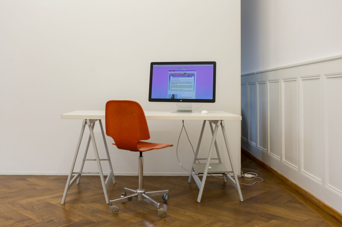 Für Sunny & Benny Together Forever (2008–2009) kreierte SUNITA PRASAD (*1984 in Syracuse, lebt in New York) zwei Accounts auf der Crowdfunding-Homepage myfreeimplants.com. Frauen schreiben sich dort ein, um ihre Brustvergrösserung oder andere Schönheitsoperationen zu finanzieren. Im Gegenzug geben sie erotisches Bild- und Videomaterial für ihre Spender preis. Prasad tritt einmal als Sunny und einmal als Benny auf, um in einer Art Sozialstudie beide Seiten dieser speziellen Online-Gemeinschaft nachvollziehen zu können. Es ist ein Experiment, das sich intensiv mit den Geschlechterrollen und dem Verhältnis von Bezahlung und Arbeit in Form der Freigabe von Bildern des eigenen Körpers auseinandersetzt. Prasad regt damit die Diskussion über die Art und Grenzen der Präsentation des Frauenkörpers in digitalen Medien an, die im Zeitalter der Zensur weiblicher Brustwarzen auf Instagram aktueller nicht sein könnte. In der Ausstellung sind zwei Versionen der Arbeit Sunny & Benny Together Forever zu sehen. Zum einen ist das Experiment als interaktives Werk vertreten, zum anderen wird die Künstlerin am 13. Juli ihre Arbeit in einer Lecture-Performance vortragen.