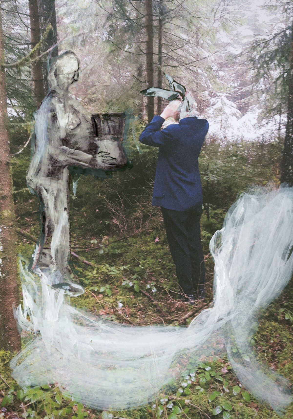 Dem Esel wird ein Diplom überreicht, weil er das Lesen gelernt hat. Das Motiv des Ausstellungsplakats zeigt die Künstlerin MAXIMILIANE BAUMGARTNER im Wald stehend in der Rolle des Esels, der die Prüfungskommission von seiner Lesefähigkeit überzeugt hat, nur weil er konditioniert im richtigen Moment «iah» sagen kann. Die Szene entstammt einem Schwank aus Till Eulenspiegel. Es ist eine frühe Satire über die Leerläufe eines rationalisierten Bildungssystems. Das Spiel mit verschiedenen Rollen zieht sich durch Baumgartners Malerei und performative wie pädagogische Praxis; ist Aneignung männlicher Rollenbilder und Verunsicherung tradierter Verhaltensweisen innerhalb öffentlicher Räume.