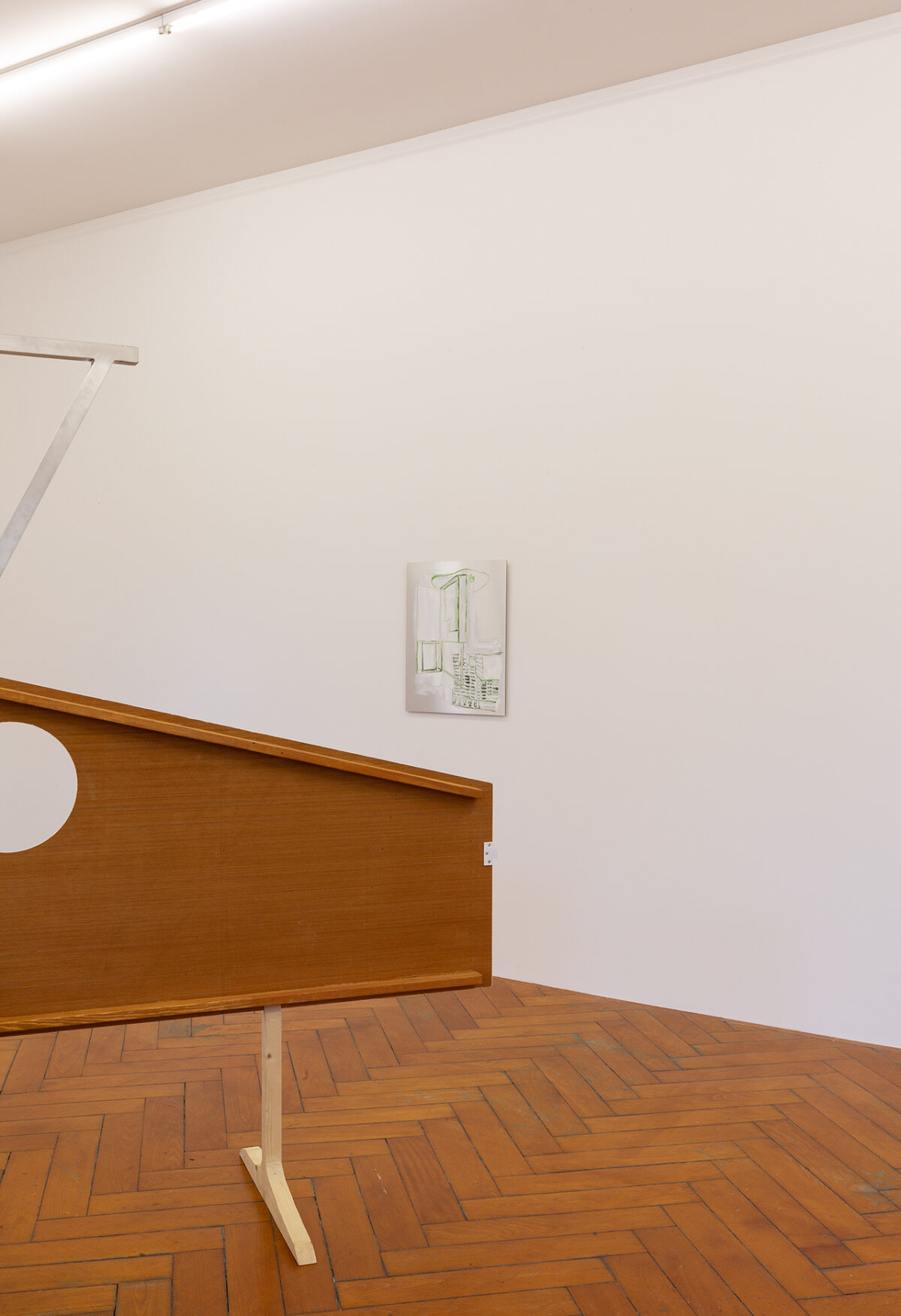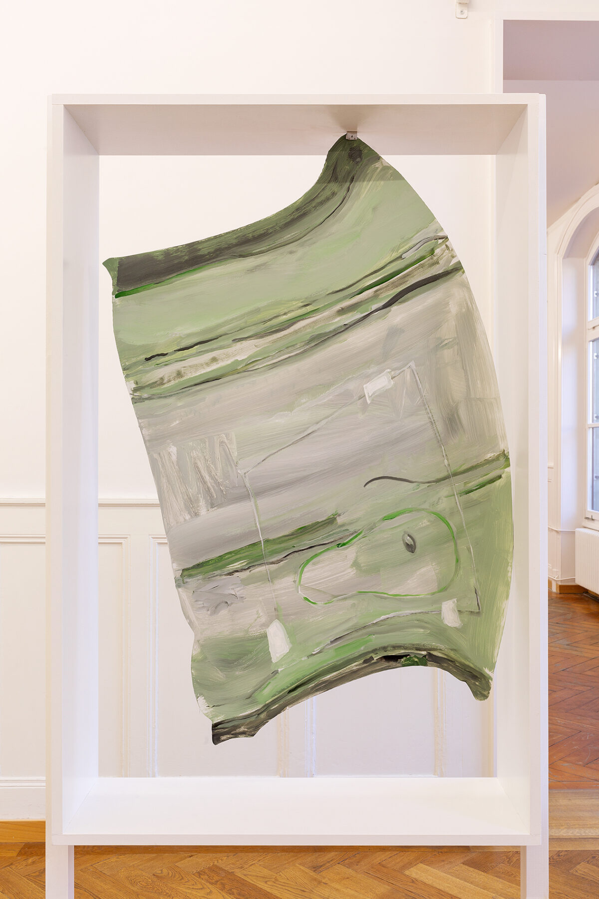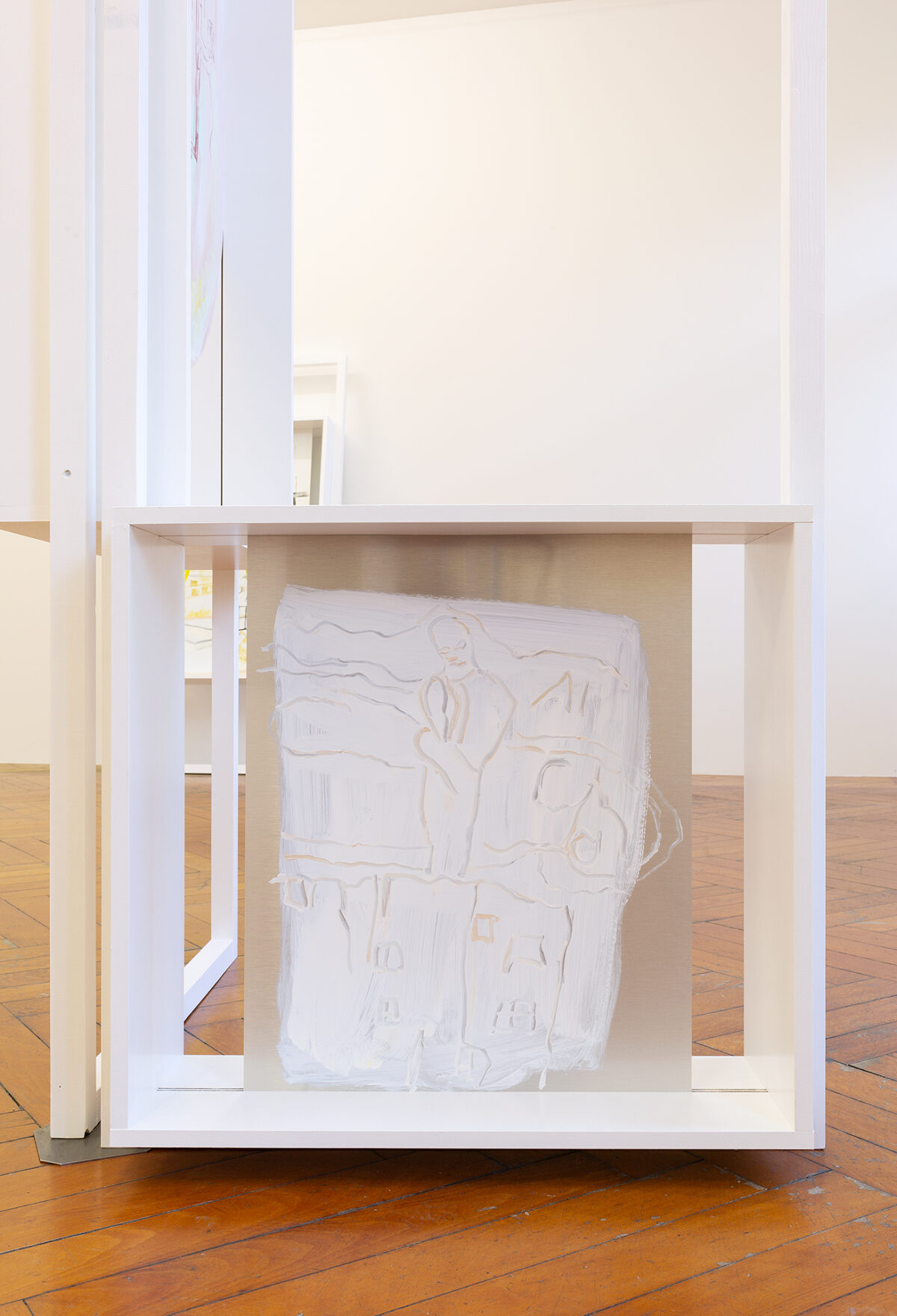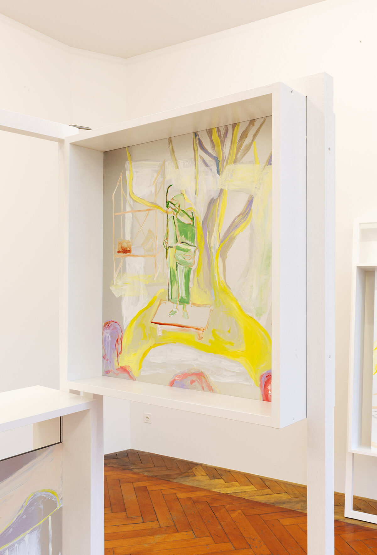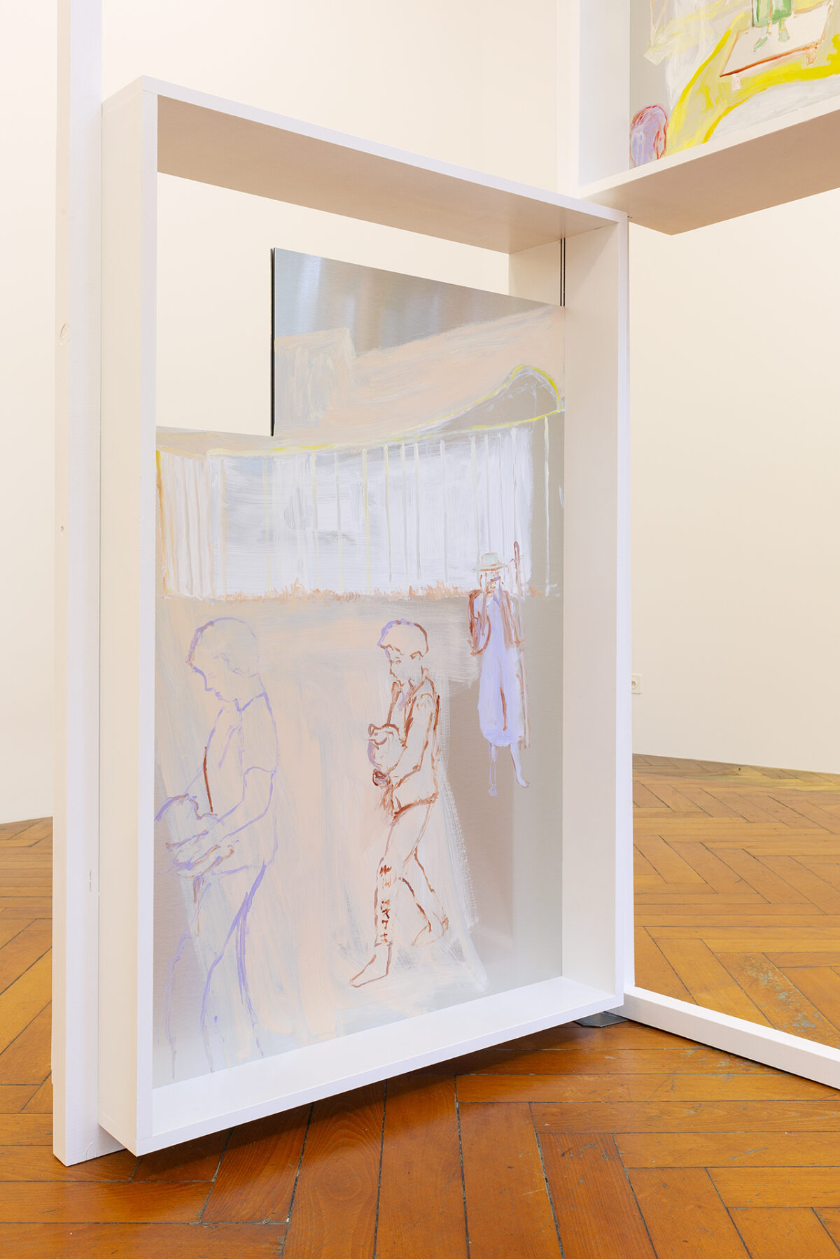 Für die Ausstellung ist ein Spielwagen entstanden, der Skulptur und gleichzeitig erweitertes künstlerisches Handlungsfeld ist: Auf dem Spielplatz Längmuur und dem Spielplatz am Schützenweg – Erben der Freien Pädagogik in Bern – werden damit Aktionen mit Kindern stattfinden. In Baumgartners Verständnis der Kunstproduktion gibt es einen ökologisch-ökonomischen Aspekt, der sich unter anderem auch in der Anschlussfähigkeit ihrer Malereien widerspiegelt. Gemeint ist die Möglichkeit der Weiterverwendung von Teilen ihrer Arbeit in neuen Installationen und Aktionsräumen. So wird der Spielwagen, der für die Ausstellung in der Stadtgalerie entstand, weiterreisen und zum Ausgangspunkt für kommende Aktionen mit Jugendlichen und Kindern werden.