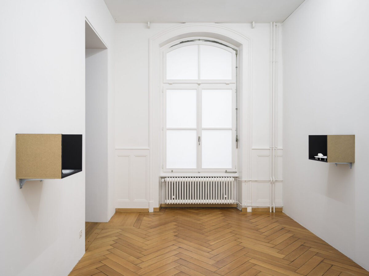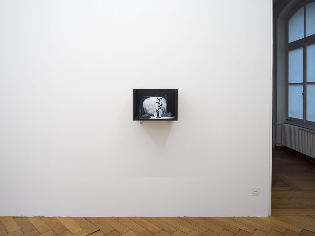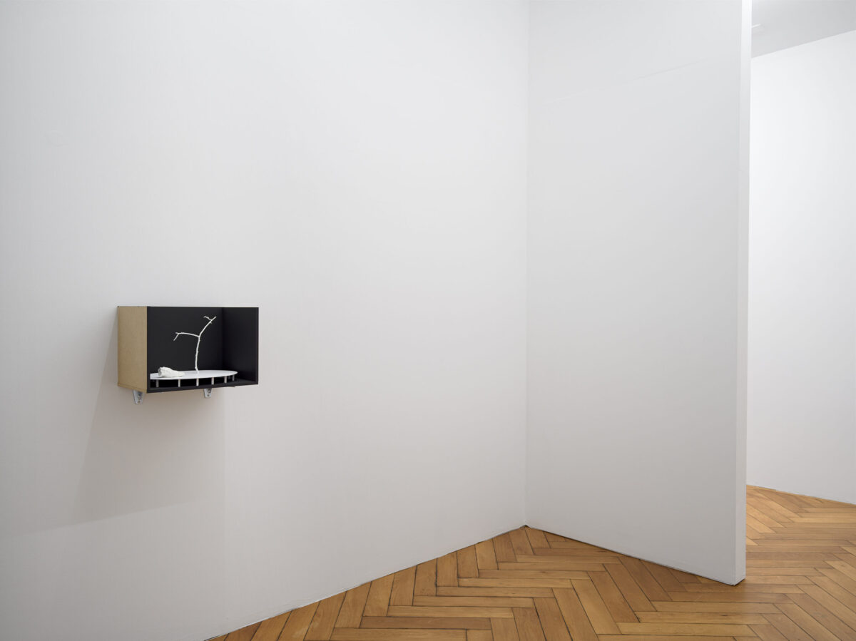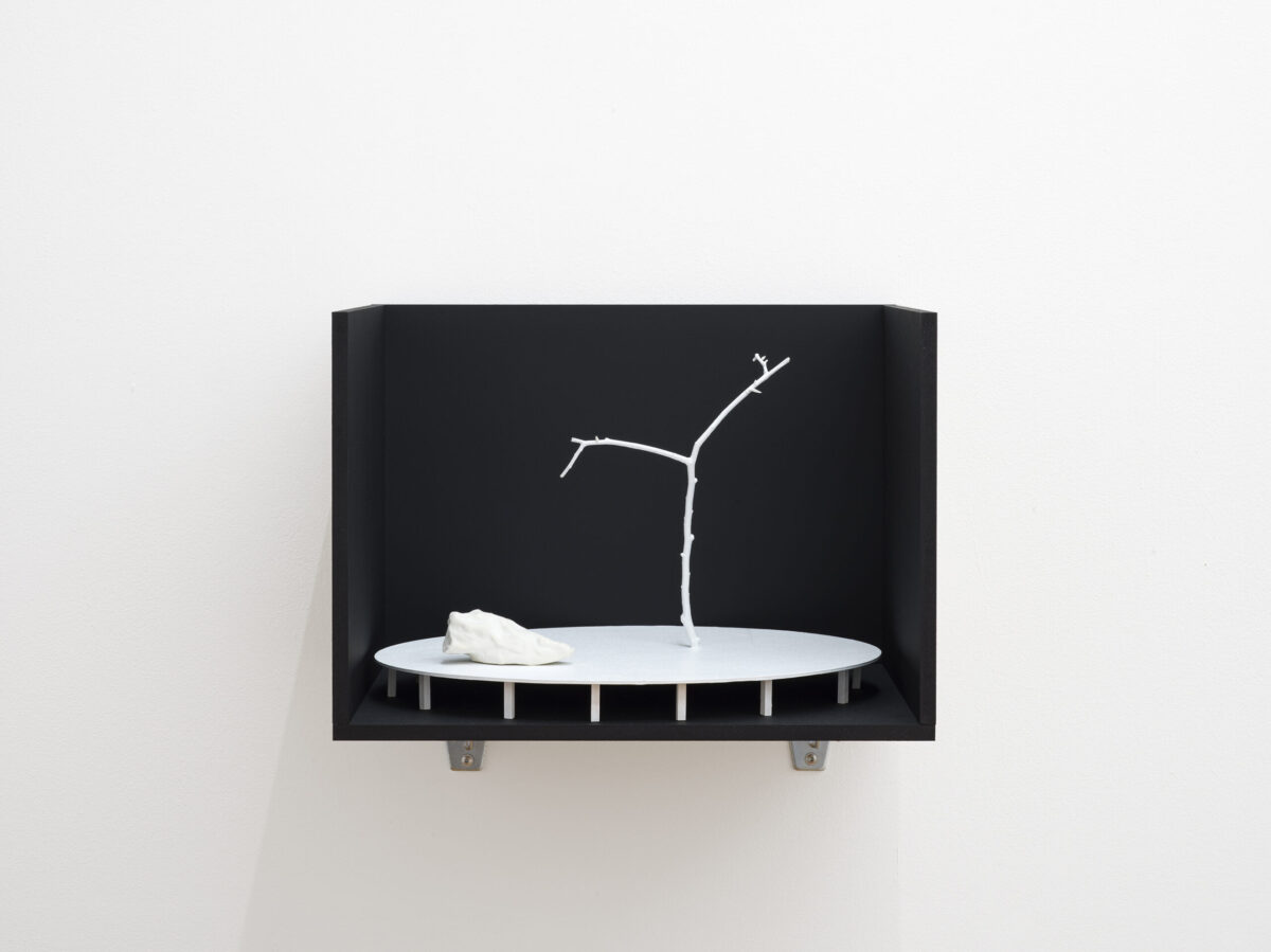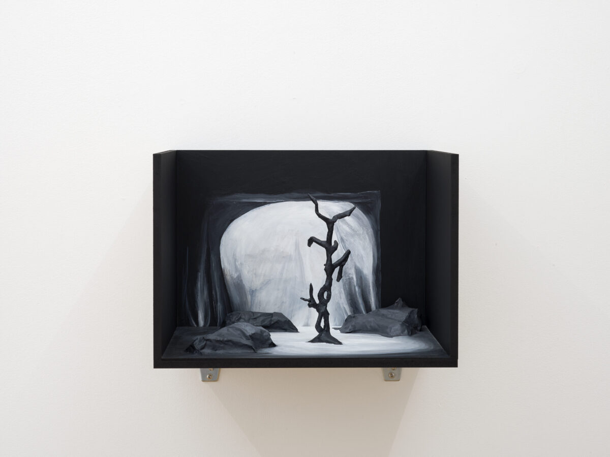 Zwei Modelle der leeren Bühnenbilder des Theaterstücks Warten auf Godot stellen eine menschliche Unproduktivität und eine Dehnung von Zeit ins Zentrum. Zwischen dem ersten und zweiten Akt ändert sich das Bühnenbild kaum, bis auf wenige Blüten, die der Baum zu tragen beginnt. In ihrer Arbeit verschränkt die Künstlerin die Zeitstruktur des Stücks mit jener der Aufführungsgeschichte. Das eine Modell zeigt das Bühnenbild im ersten Akt der Uraufführung 1953 in Paris, das andere Modell jenes der Wiederaufführung 1978 in Avignon im zweiten Akt. Dazwischen liegen über zwanzig Jahre der Wiederaufführung, Reinszenierung, und Interpretation.