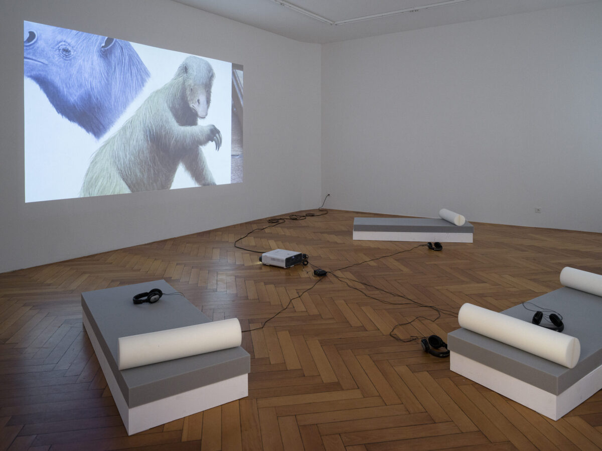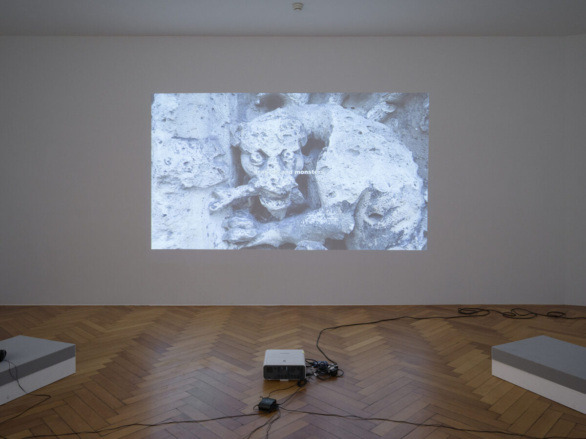 Kontinuitäten und Brüche, die das Eingebundensein als Individuum und Kunstproduzentin in unterschiedliche Geschichtlichkeiten prägen, sind wiederkehrende Motive in Karen Amanda Mosers Arbeiten. Die Ausstellung schafft Verbindungslinien zwischen dem Paris der Nachkriegszeit und jenem der Gegenwart: Während ihres diesjährigen Aufenthaltes an der Cité internationale des arts entstand das Video Re-production (2023). Es ist eine Dérive der Künstlerin durch Infrastrukturen, Museen, Friedhöfe und Menagerien der Stadt – durch eine Landschaft der Dinge. Dabei bewegt sie sich als Künstlerin, Teilnehmerin der Residenz europäischer Kulturdiplomatie und kultureller Anreicherung, als Touristin, als Individuum durch diese Orte der Geschichtsvermittlung, Verwaltung oder des Gedenkens. Wie sie vom Wandel berichten, handeln sie auch von Kontrolle über Körper – menschliche und nichtmenschliche – und erzeugen ein vermeintliches System der Ordnung: Als Meta-Museen der Geschichte der gewaltsamen, europäischen Expansion des Kapitalismus. Karen Amanda Moser entwirft in ihrer Arbeit Re-production eine lose Kartografie von Machtstrukturen, und visualisiert diese in Form einer Introspektion, thematisiert Mechanismen biologischer und sozialer Reproduktionen.
