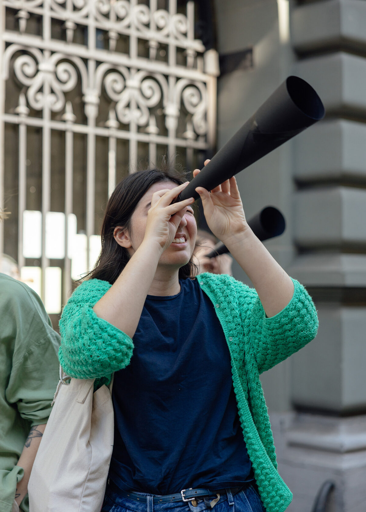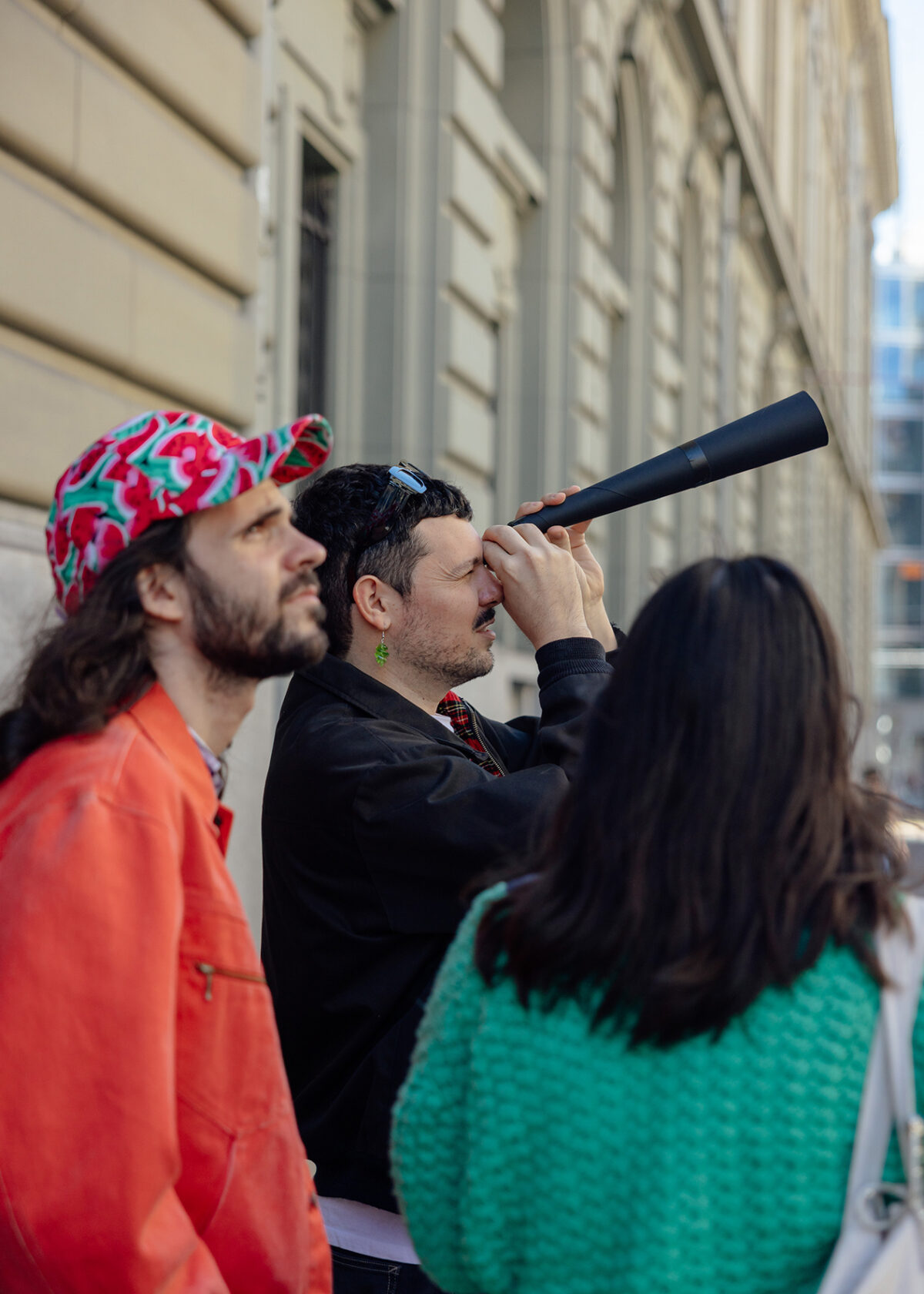 Sergio Rojas Chaves lädt ein zu einem Spaziergang durchs Quartier: Mit Teleskop und Fernglas ausgerüstet, entdecken Sie all die tropischen Pflanzen, die in Bern in Büroräumen, Privatwohnungen und Ladenlokalen leben und hinter Fenstern und Vorhängen hervorlugen. Auf der Suche nach dem Urwald in Innenräumen, haben Sie die Gelegenheit, die botanische Identität der Stadt und deren nicht-menschliche Lebewesen besser kennen zu lernen sowie Ihre Perspektive auf Pflanzenhaltung zu erweitern.