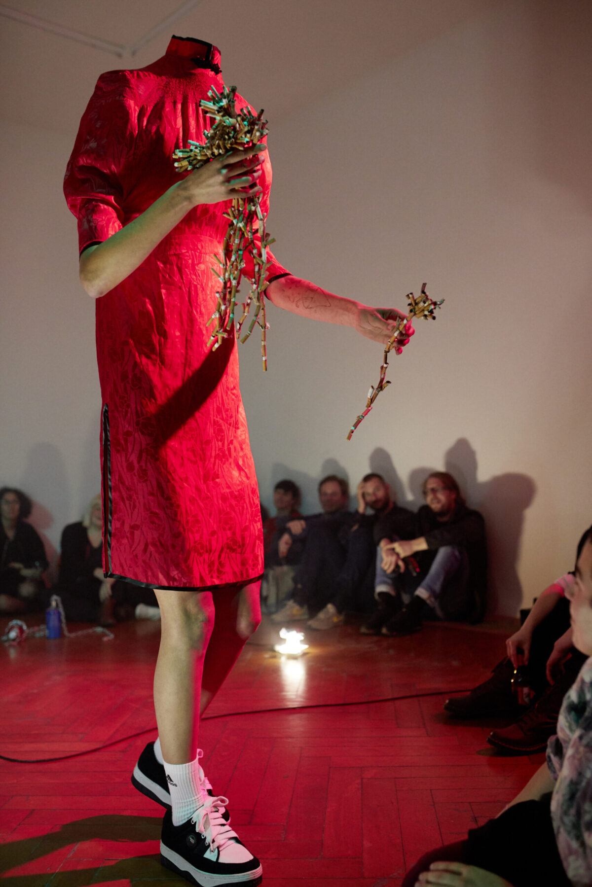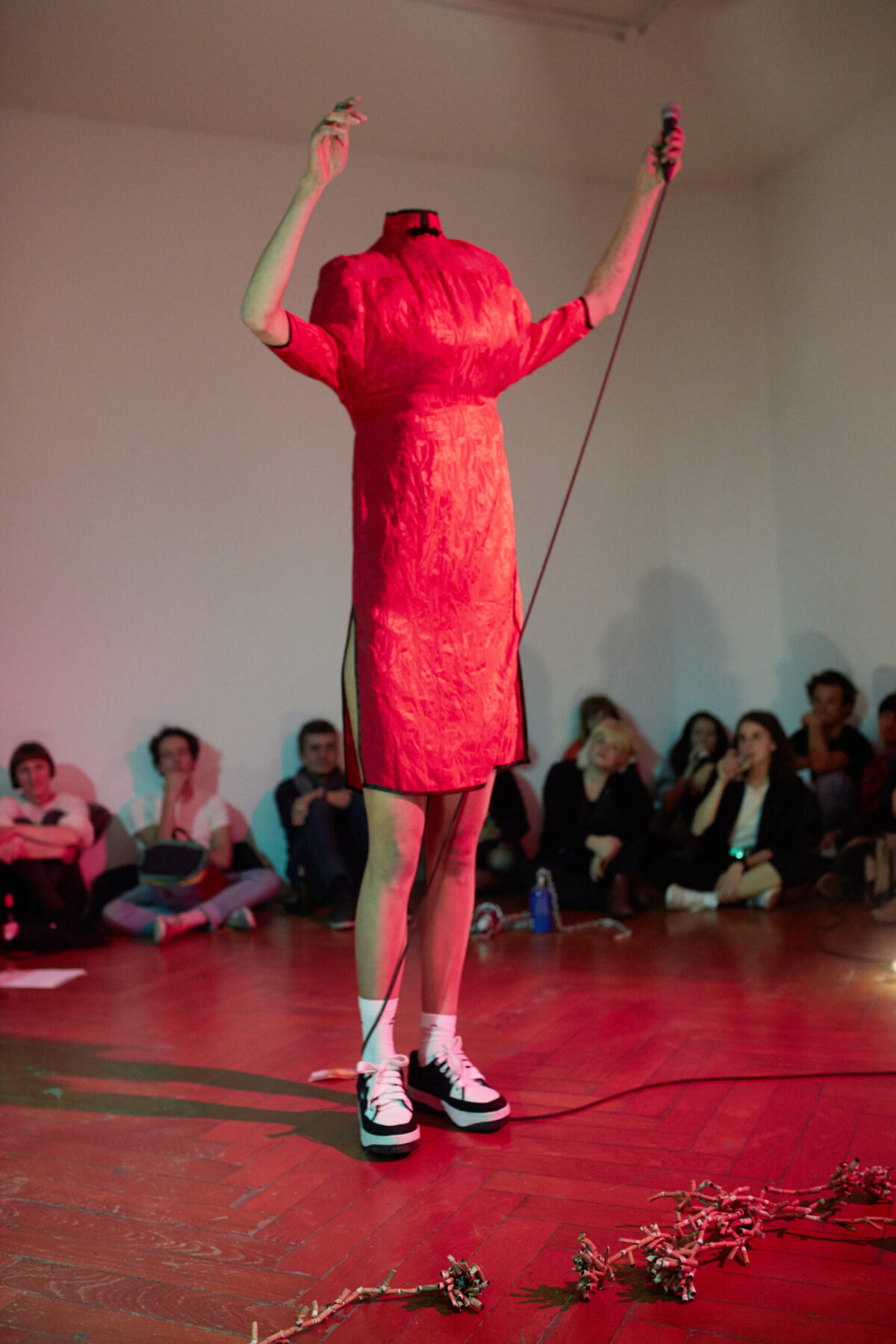 Performance über ein feierndes Subjekt in der Rolle der Entertainerin.